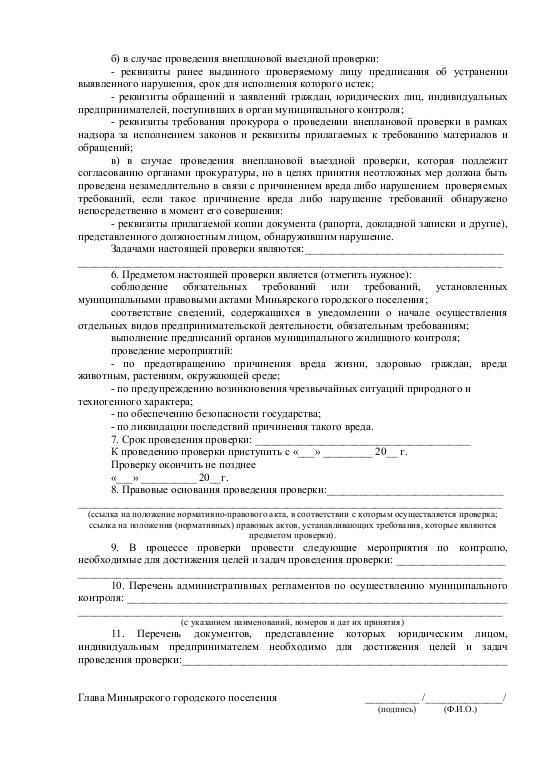 30. Уполномоченное должностное лицо уведомляет юридическое лицо, индивидуального предпринимателя, гражданина, в отношении которого будет проведена проверка, посредством направления копии распоряжения администрации Миньярского городского поселения о проведении проверки: